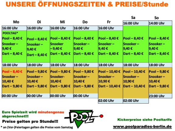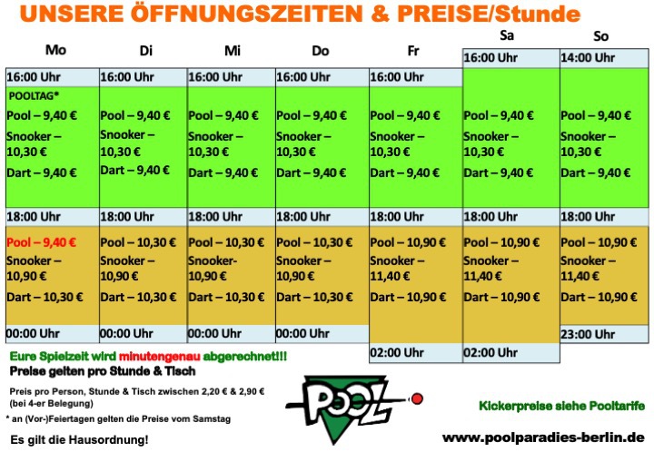 Das Poolparadies ist nicht einfach nur ein Billardsalon. Natürlich könnt Ihr bei uns Billard & Snooker spielen, sowie darten & kickern. Dafür bieten wir Euch auf über 800m2: